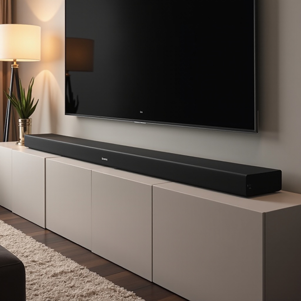 - Positionieren Sie Ihre Soundbar: Platzieren Sie sie direkt vor dem Fernseher oder unter dem Bildschirm, wenn sie an der Wand montiert ist, zentriert für eine ausgewogene Schallverteilung.